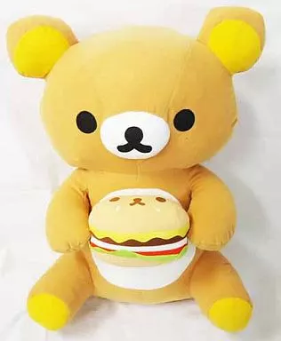 Product explanation ■ Big size Plush toy by Rilakkuma who eats Rilakkuma shaped burgers.