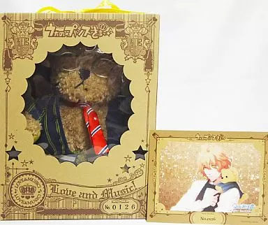 Bear body (leg and hand yellow), glasses, jacket, tie, belt, paper box (special case), ribbon (for box / yellow), and Bromide