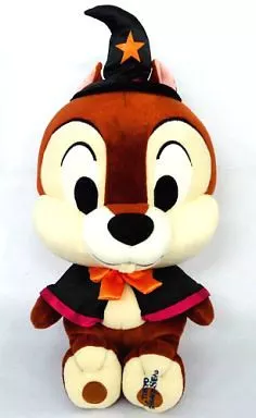 This is a chip Plush toy with a black cape and cap and an orange bow tie costume.