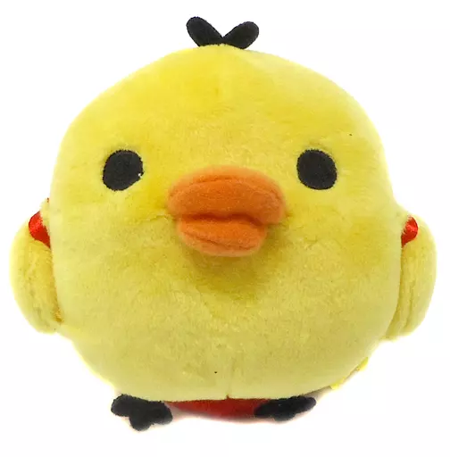 てんとうむしのバッグを背負ったキイロイトリのぬいぐるみです。