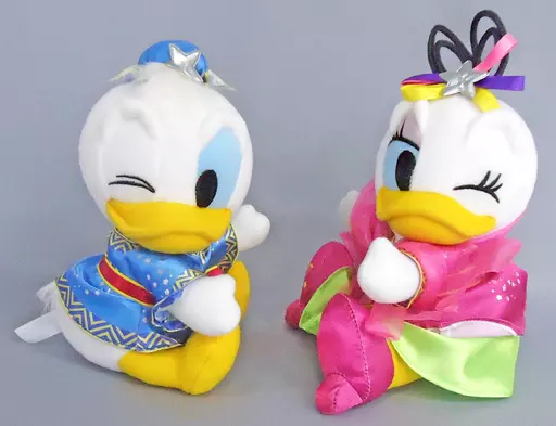 This pair Plush toy is from Donald Duck and Daisy Duck with magnets on the cheeks, palm and feet on the side with closed eyes.