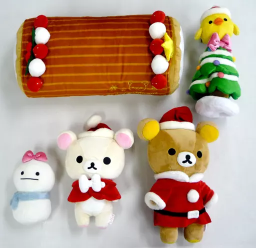 Size : Rilakkuma height approx. 30 cm, Ko Rilakkuma height approx. 25 cm, Kiroyori & Tree length approx. 36 cm, Snowman height approx. 11.5 cm, Swiss Roll length approx. 40 cm