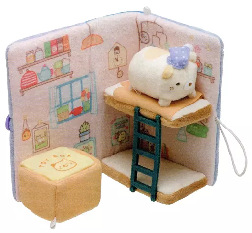 Sumiko-House bedroom (2-tiered bed, ladder, cotton blanket), Tennori Plush toy x 1 (cat), Sumiko-Toy box
