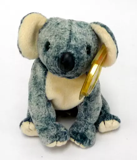 This is a koala Plush toy with black eyes and a mixed blue and white color body.