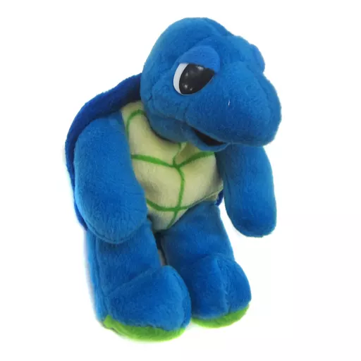 This is a turtle with a blue body. The back shell has a design of "Steel Your Face" lightning bolt.