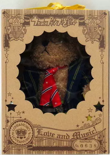Bear body (legs and hands yellow), glasses, jacket, tie, belt