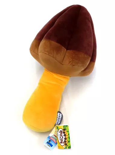 The product is made from the shape of the chocolate snack of "Mushroom no Yama" into a "chewy" Plush toy.
