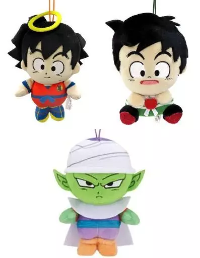 This is a mascot size Plush toy with 3 kinds of designs : Son Gohan and Piccolo in their childhood with the clothing design when they were training under Piccolo, and Goku with a design with a ring on the head when they started walking along the path of snakes aiming to become the king of the world around the same time.