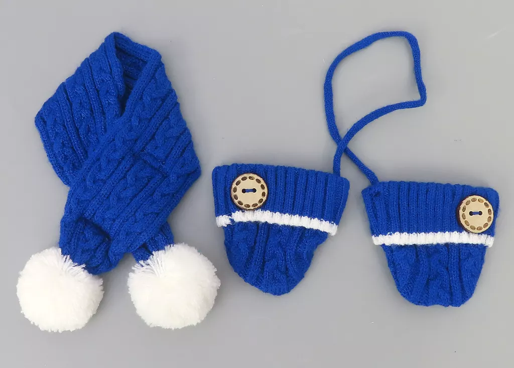 This is a set of loosely woven gloves and muffler.