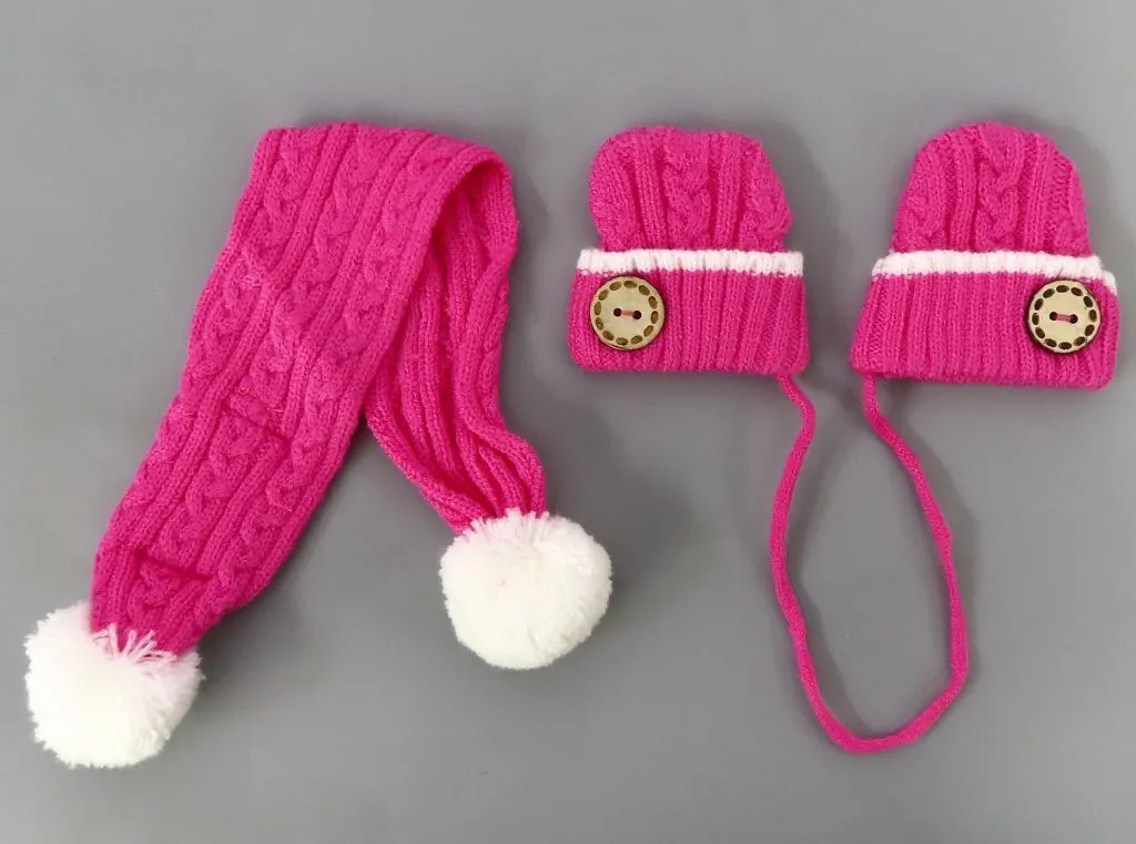 This is a set of loosely woven gloves and muffler.