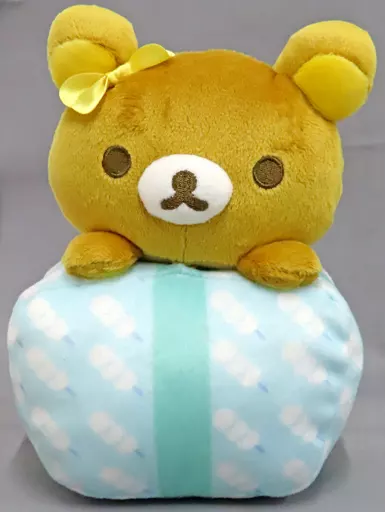 This is a very cute Plush toy with Rilakkuma appearing from the gift box.