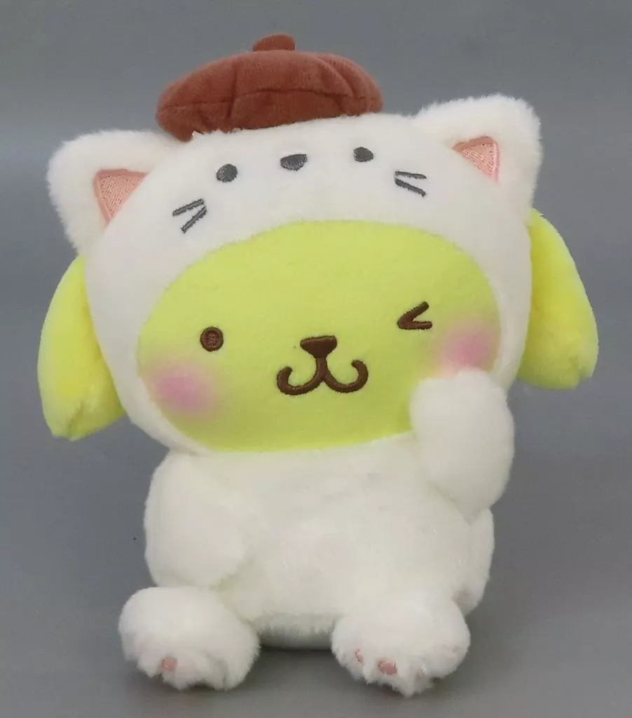 This is Plush toy who wears a cute cat costume.