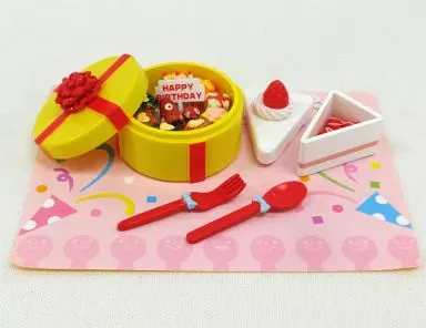 Gift, rice, cake-shaped lunch box, box of cake-shaped lunch box, condensed milk strawberry, spoon, fork, flag pole, flag stand