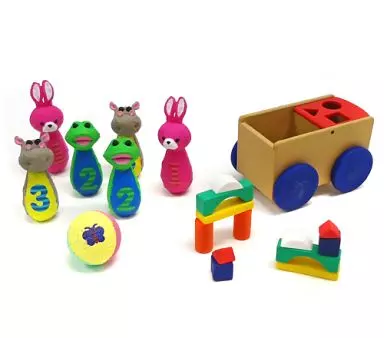 Animal Boring Pin (Rabbit x 2, Frog x 2, Hippo x 2), Boring Tama, Tsu Miki, Wooden Toy Box (with tires)