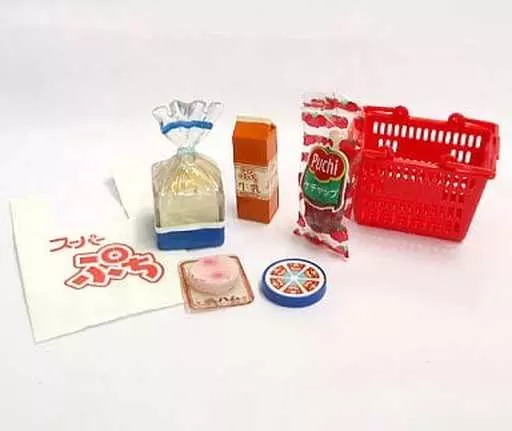 There are 4-5 kinds of daily goods figurines, and there are also a mini mini shopping basket and a mini mini plastic bag.