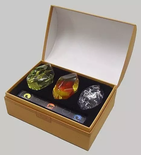 As per the image in the story, each motif part of Honoo, Mizu, and Kaminari is contained in a highly transparent resin.