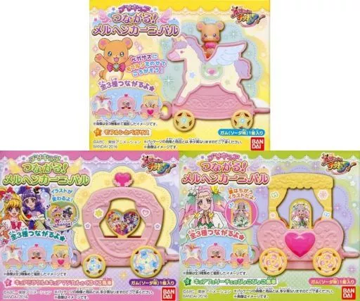 There are 3 types of carriage, such as the Pegasus with the popular モフルンフィギュア and the Precure carriage with a cute plate!