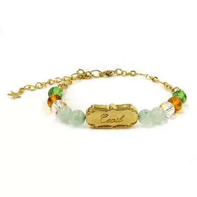 idol This is a cute bracelet that can be used everyday, made with natural stones in each image color, and with a charm with a name carved into it.