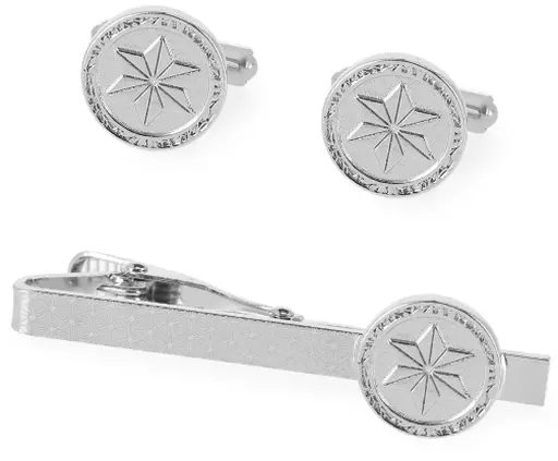 Size : Medal : approx. 13 mm dia. / Tie Bar : approx. 4.5 mm x 50 mm wide / Cuffs : approx. 13 mm dia.
