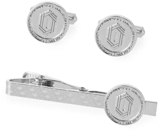 Size : Medal : approx. 13 mm dia. / Tie Bar : approx. 4.5 mm x 50 mm wide / Cuffs : approx. 13 mm dia.
