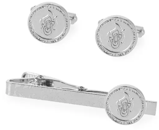 Size : Medal : approx. 13 mm dia. / Tie Bar : approx. 4.5 mm x 50 mm wide / Cuffs : approx. 13 mm dia.