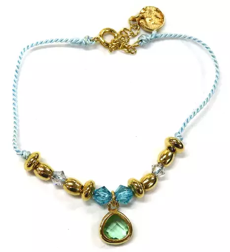This is a simple bracelet with Swarovski beads and metal beads decorated with a color cord with the image of Character Kter.