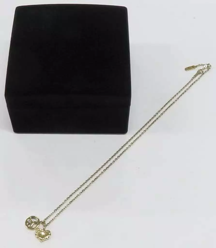 This necklace uses the "peace mark" and "heart" "peace mark" and "heart" attached to the chest by Azuma Josuke. On the back side of the heart, there is a three dimensional design of "palm".