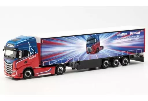 Japanese title: ミニカー 1/87 イベコ S-Way カーテンキャンバス セミトレーラー “Magirus Edition / Muller-Pischa” [HE315197]