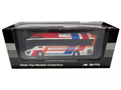 The 1/80 Tokyu Transse Express Bus 1st anniversary model #3303 (red x white x blue) is lined up in Tokyu Desktop Model Collection.