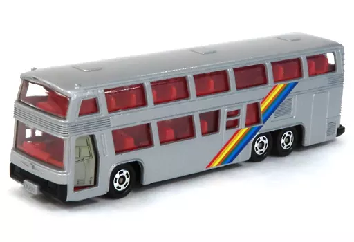 The 1/100 Neo Plan Bus Osaka Castle 400 Festival (silver x red x blue) is lined up in "Long Tomica".