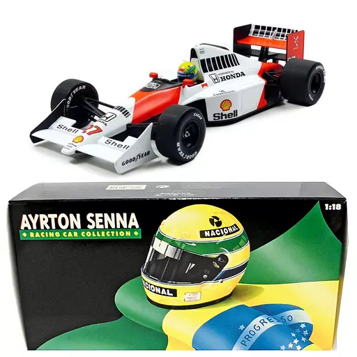 Product Description ■ 「 AYRTON SENNA RACING CAR COLLECTION 」, 1/18 McLaren Honda MP4/5B WORLD CHAMPION 1990 #27 (White x Orange) is available.