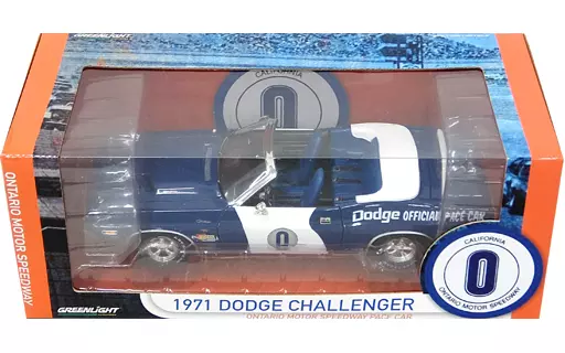 Item explanation ■ 1971 DODGE CHALLENGER ONTARIO MOTOR Speedway PACE CAR #0 (blue x white) is now available in a 1/18 scale display model.