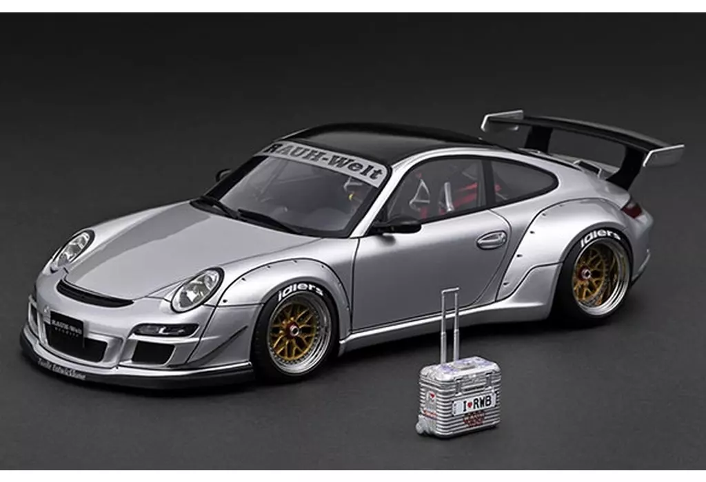 Product explanation ■ RWB demonstration car "RWB 997 GT3" has been reproduced with 1/18 scale resin model. Body color : silver / roof black.