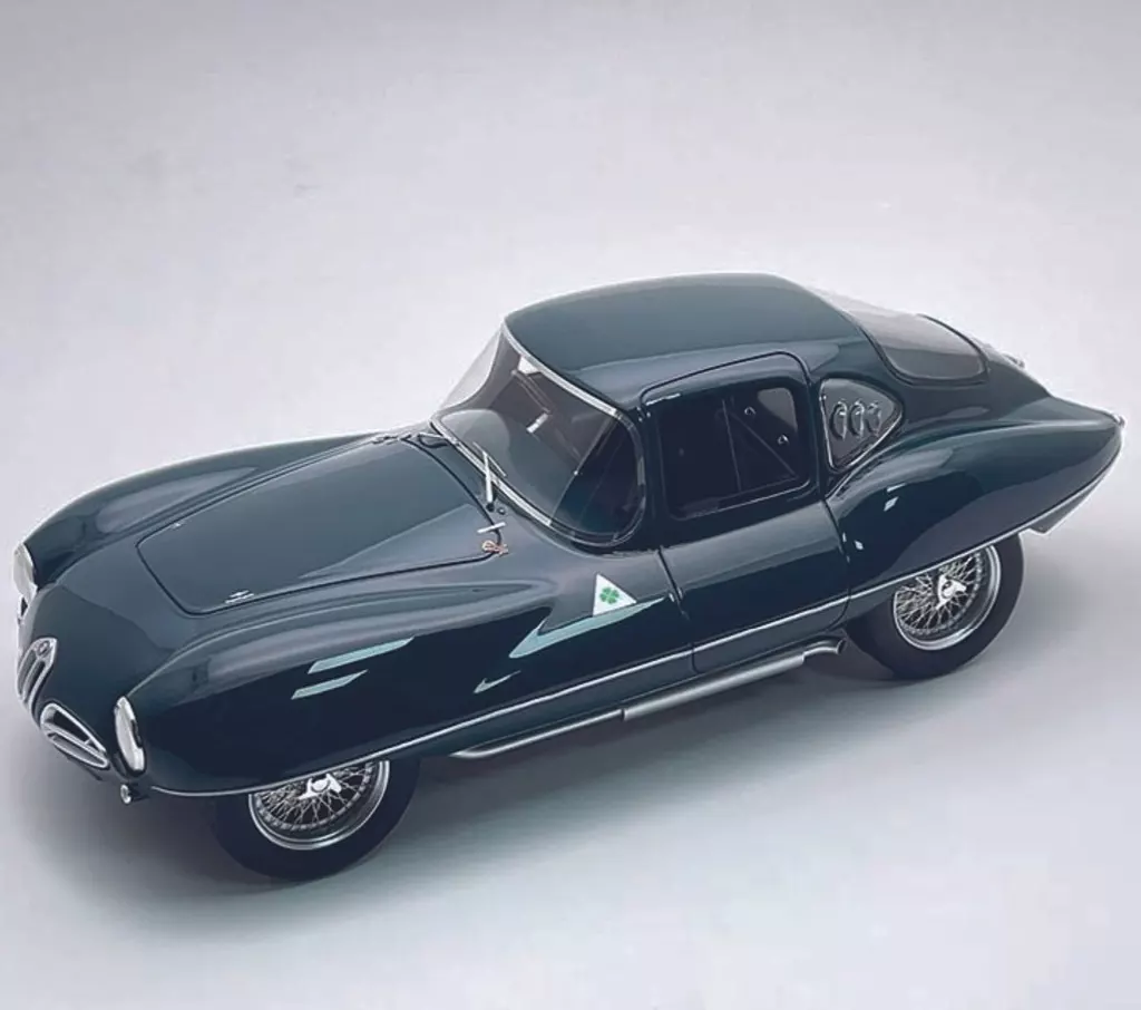 The Disco Volante has a novel body made by Carrozzeria Touring incorporating the results of wind tunnel experiments. At first, two spiders were made, and one of them was modified into a coupe in 1953.