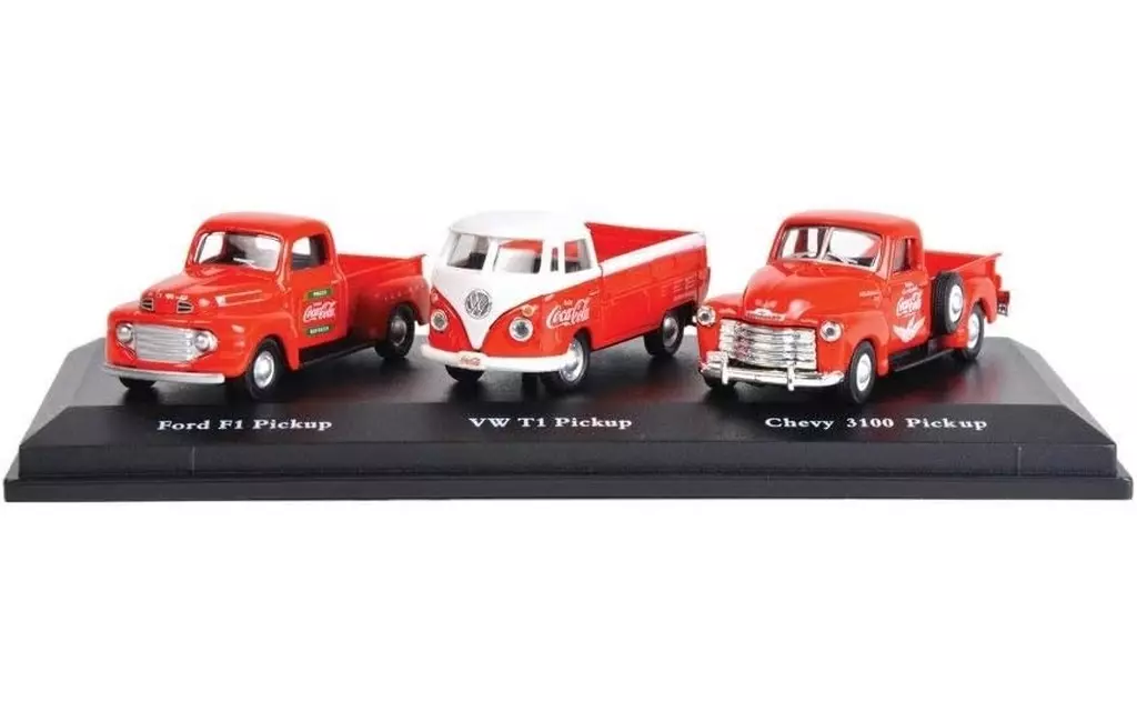 ● A complete diecast model with a 1/72 scale reproduction of the Ford F1, Chevrolet 3100 and Volkswagen T1.