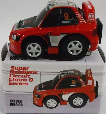 In "Super Real Circuit CHORO Q Series", Lancer WRC05 #9 (Red x Black x Silver) is lined up.
