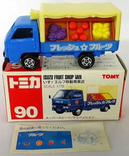 There is a lineup of 1/78 Isuzu ELF Mobile Vegetable Store (blue x light yellow) in "Tomica".