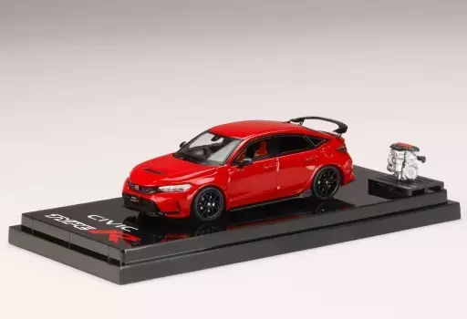 The red Type R sheet that is also used in FL5, the red badge of the front grill reproduced with a three dimensional metal sticker, and the center cap of the wheel are all 1/64 scale, but it is made with particular attention to Type R.