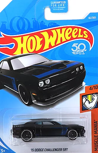 1/64' 15 DODGE CHALLENGER SRT (black x blue) is lined up in the item explanation ■「 Hot Wheels Muscle Mania.