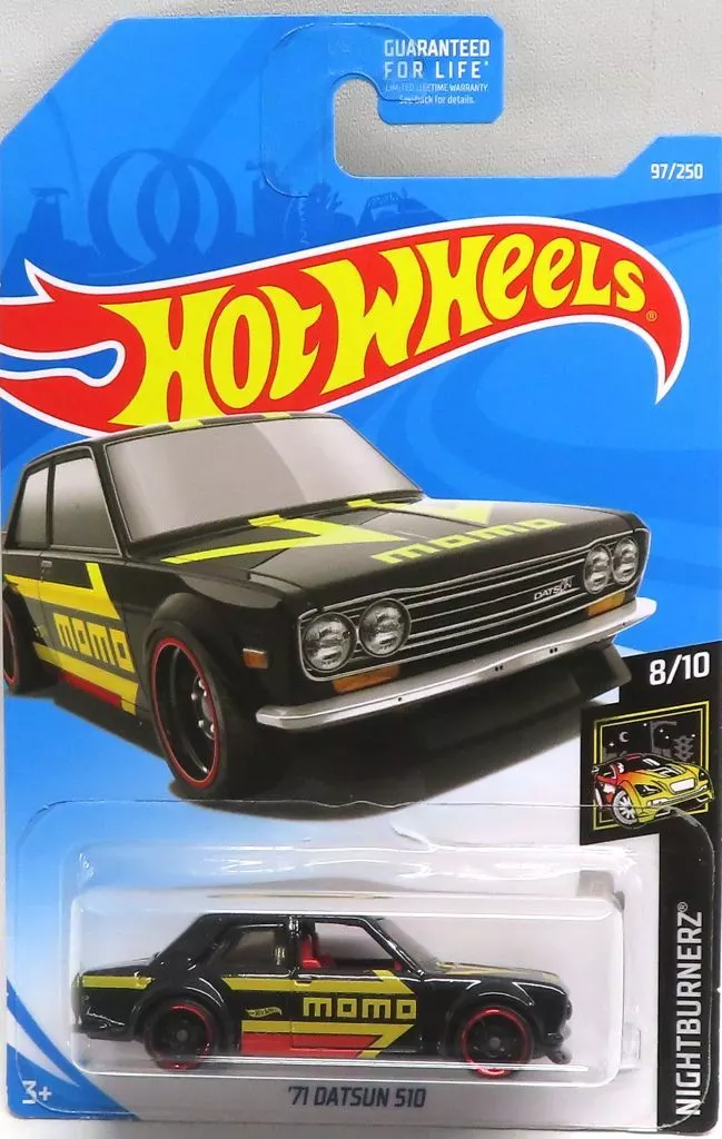 There is a line up of 1/64' 71 DATSUN 510 (black x yellow x red) in the item description ■「 Hot Wheels NIGHTBURNERZ.