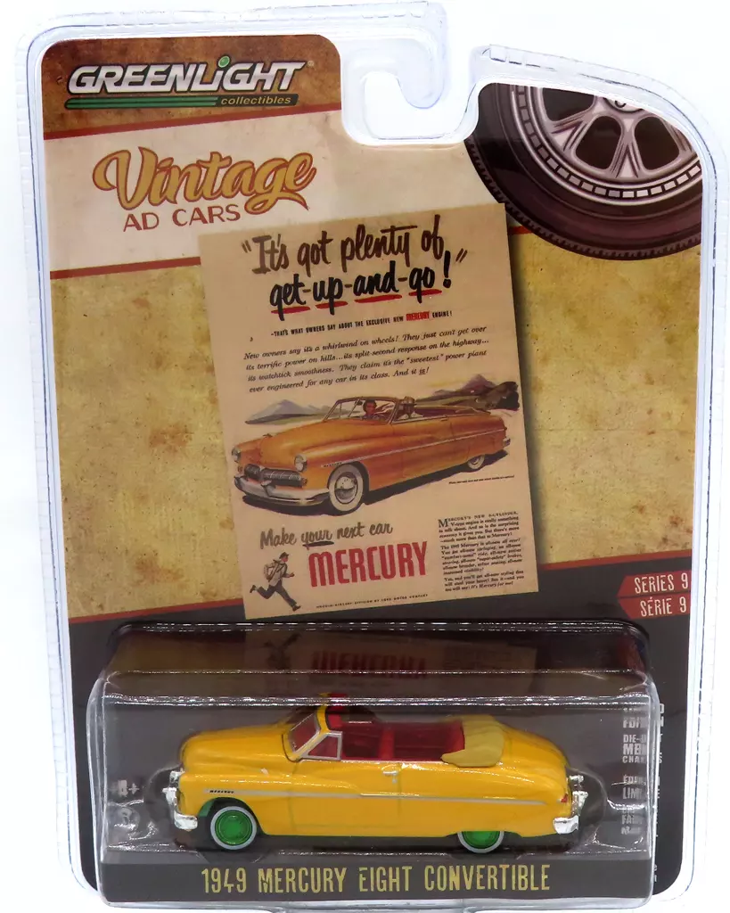 商品解説■「Vintage Ad Cars Series 9」に、1/64 1949 Mercury Eight Convertible “It’s Got Plenty Of Get-Up-And-Go!”がラインナップ。
