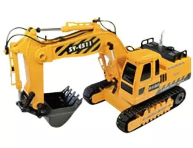 Comes with 27 MHz (single band). Upper frame turns left and right 660 degrees. Arm and bucket are linked up up and down.