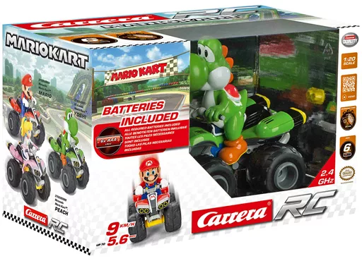 商品解説■「マリオカート」より、マリオカート バギーR/C ヨッシー(グリーン×ホワイト)が、1/20スケールのラジオコントロールカーで登場です。