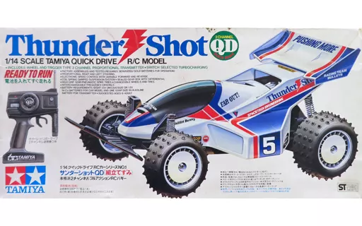 The "Quick Drive RC Car Series" comes in 1/14 Thunder Shot QD (white x blue x red).