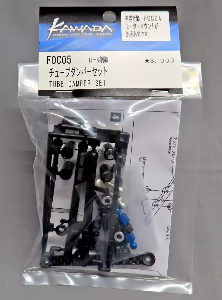 A tube damper set that can be used when Yaskawa Motor Mount Set (FOC04) is attached to a C car made by Tamiya.