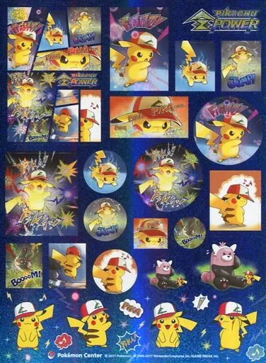 This is a sticker with a cool design of the scene where Satoshi's Pikachu uses Z technique. It sparkles!