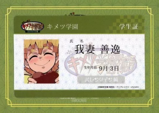 This is the "IC card changing sticker" which you can get as the ufotable point prize of "Junior and senior high school unified! キメツ Gakuen Monogatari ×ufotable cafe".