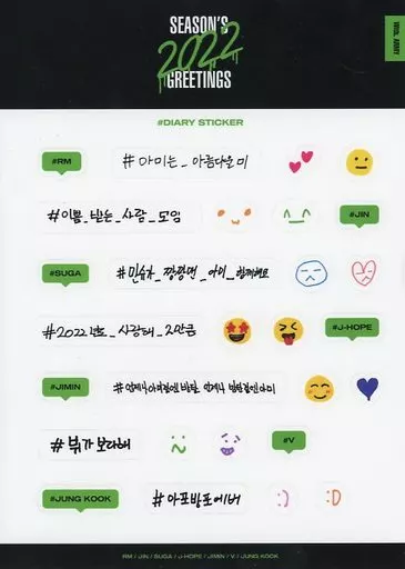 Product Explanation ■ This item is the 『 Diary Sticker 』 attached to the 2022 diary body of "BTS 2022 SEASON'S GREETINGS".
