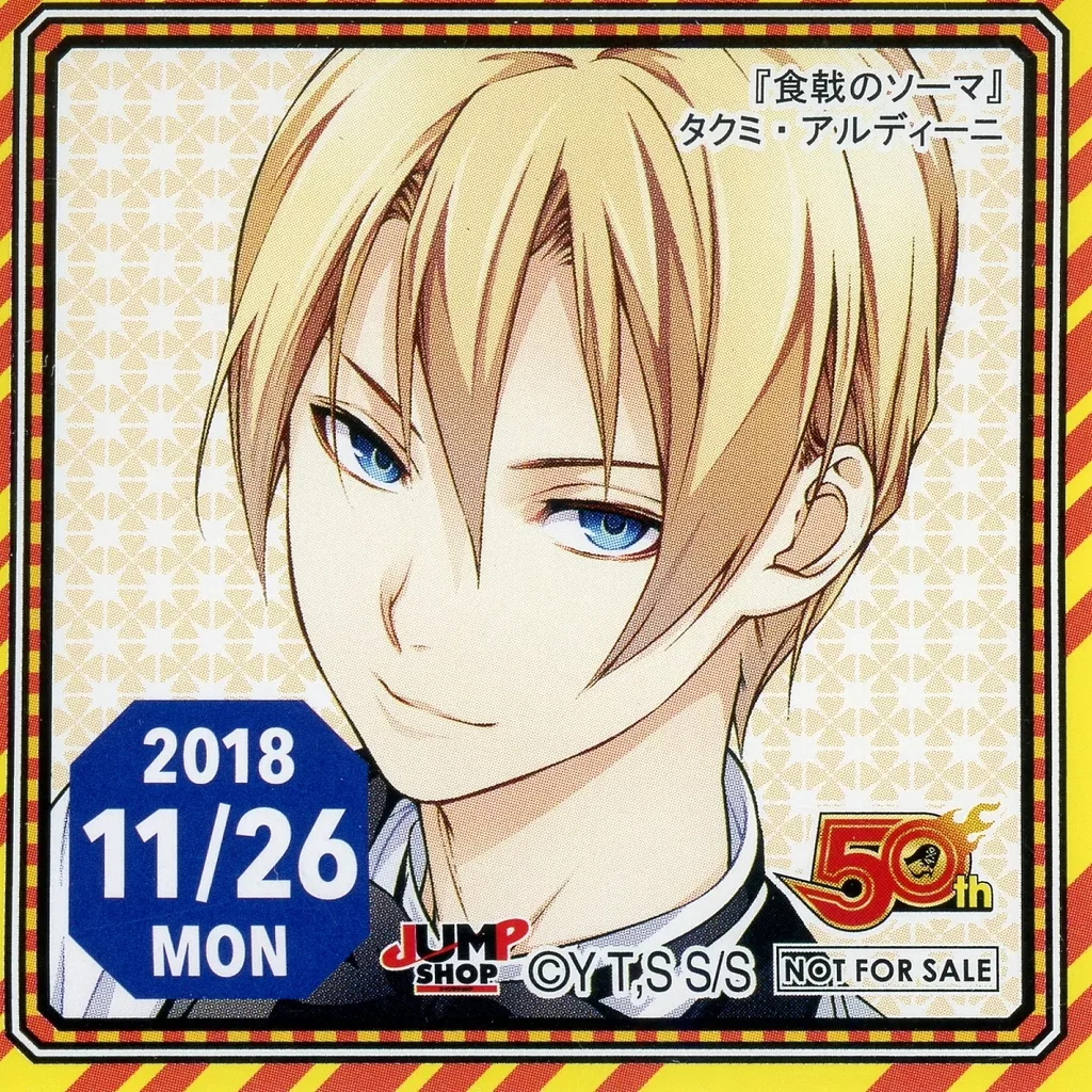 Japanese title: シール・ステッカー タクミ・アルディーニ(2018/11/26) 365日ステッカー 「食戟のソーマ」 ジャンプショップ限定 配布品