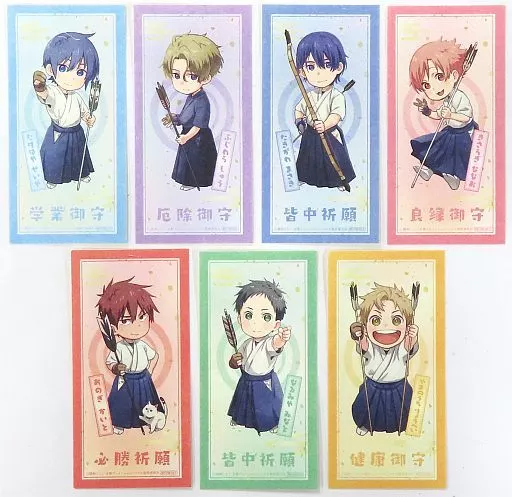Japanese title: シール・ステッカー 全7種セット 門脇未来描き下ろし みんなで応援 !お守り風ステッカー 「劇場版ツルネ -はじまりの一射-」 第3弾グッズ付きムビチケ前売り券特典